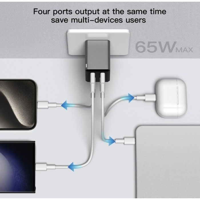 charger ip KIIP Wireless C19E Kepala Adaptor Charger GaN6 Fast Charging 65W 2C+2U 4 Port USB