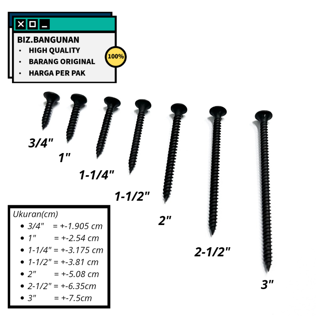 [HARGA PER KOTAK] SEKRUP GYPSUM BAJA - BAUT SKRUP KAYU DRYWALL SCREW