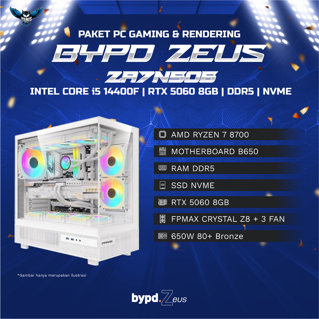 BYPD ZEUS ZA7N506 AMD Ryzen 7 8700F 5Ghz | RTX 5060 8GB | DDR5 | NVME | FPMAX - GAMING PC