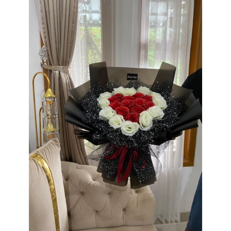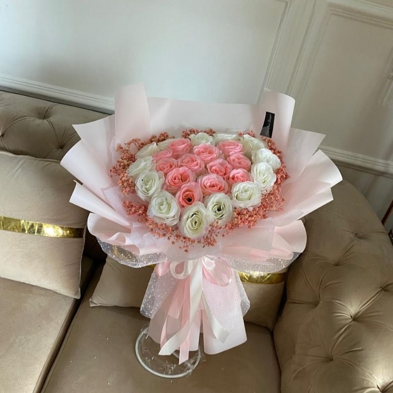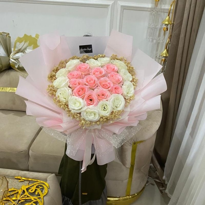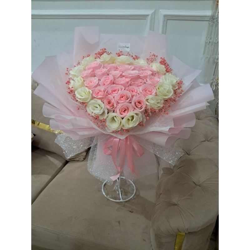 buket bunga love cantikkkk promo 24 tangkai full bunga artificial/imitasi