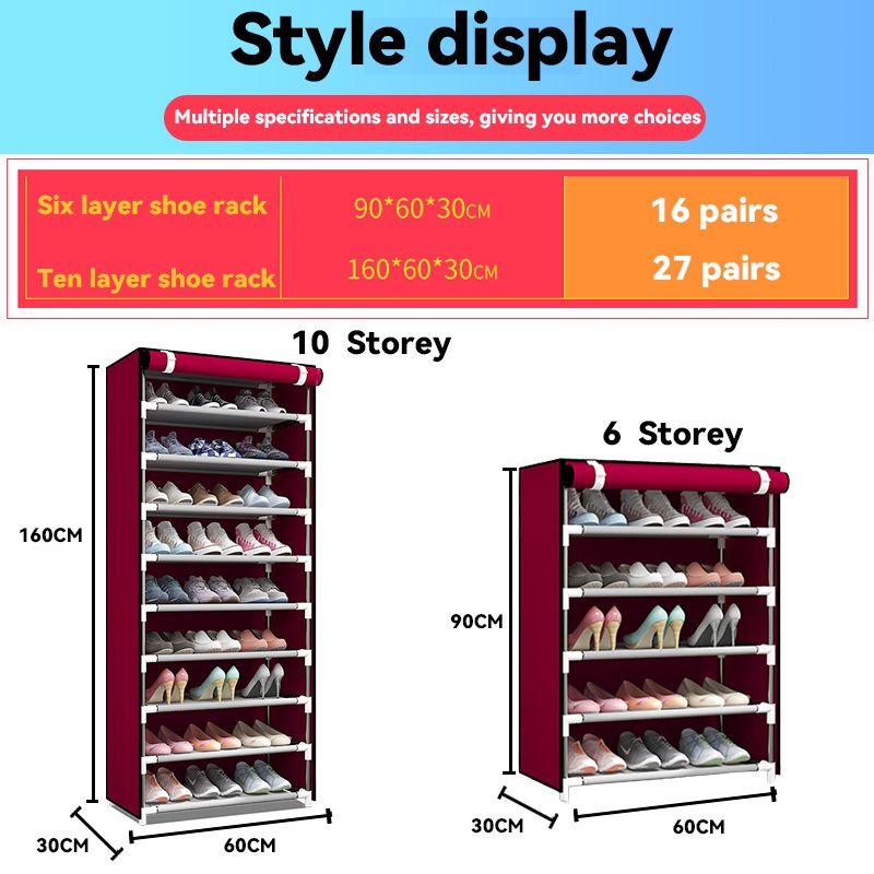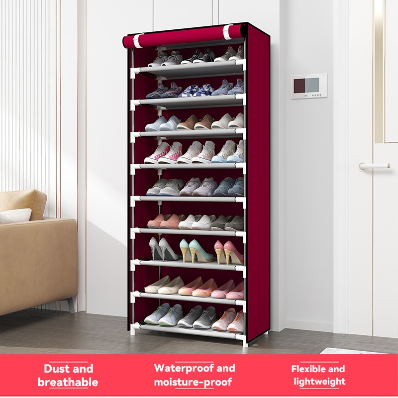 Rak Sepatu Portable 10 Susun 9 Slot Tahan Air & Debu Dilengkapi Dust Cover Hemat Ruang Multifungsi