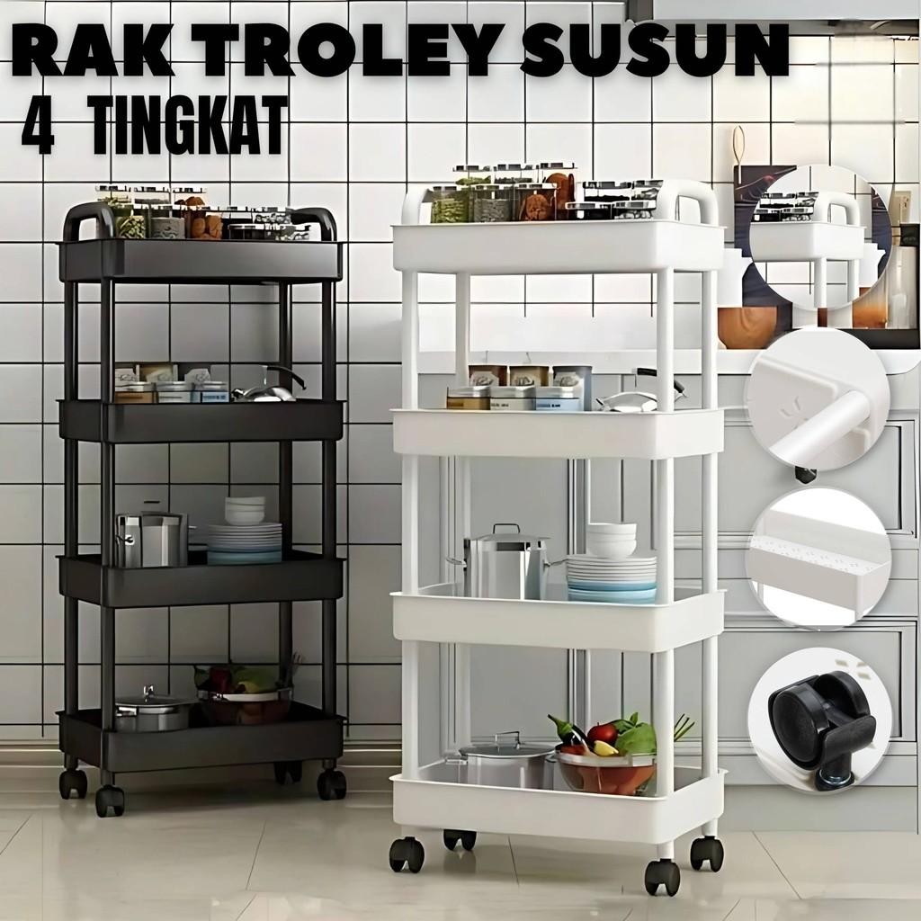 Rak troli plastik rak toilet rak kamar mandi rak dapur serbaguna dengan roda Rak Bumbu Rak Susun Kosmetik
