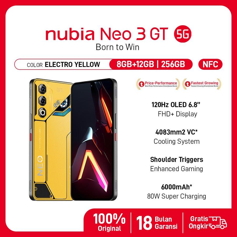 [ ππ π°πΉπππΆππ² ππΆπ³π ππΌπ ] Nubia NEO 3 GT 5G 8/256GB - Include" TWS Gaming-Jersey-Photo Card-Finger Gloves