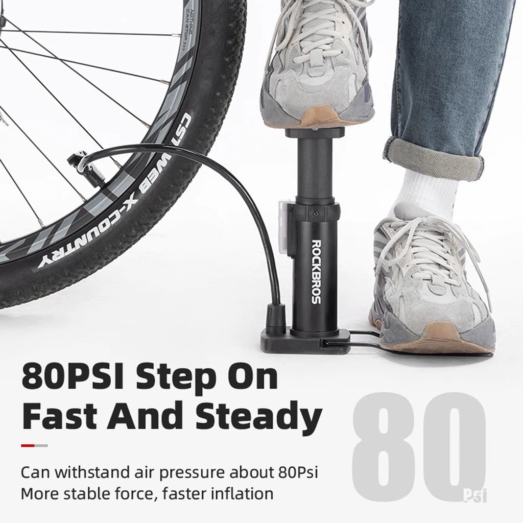 ROCKBROS 4522L Pompa Sepeda 80 PSI Schrader Presta Pompa Kaki Portable