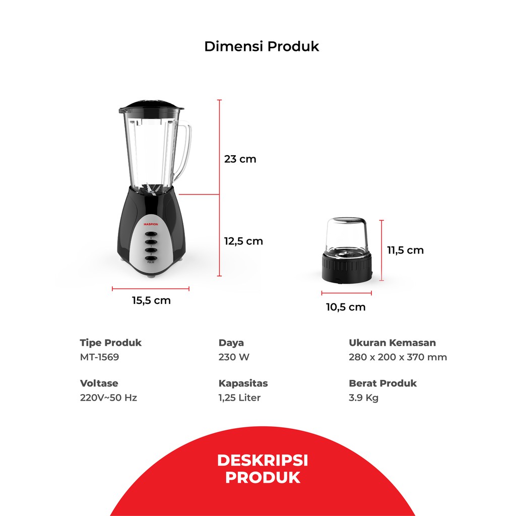 NEW ORIGINAL Maspion Pelumat Blender with Dry Miller 1.25 Liter MT-1569