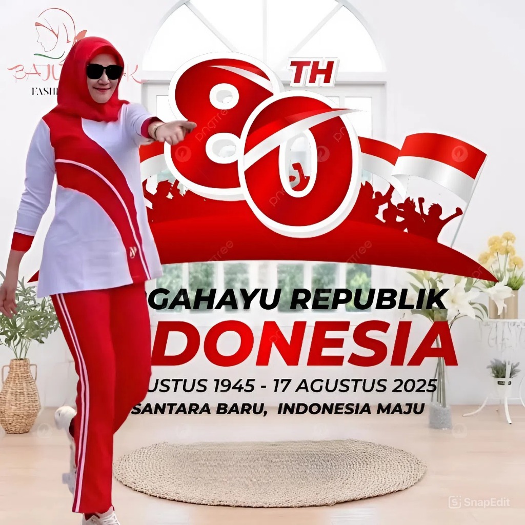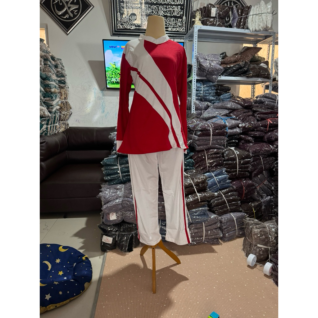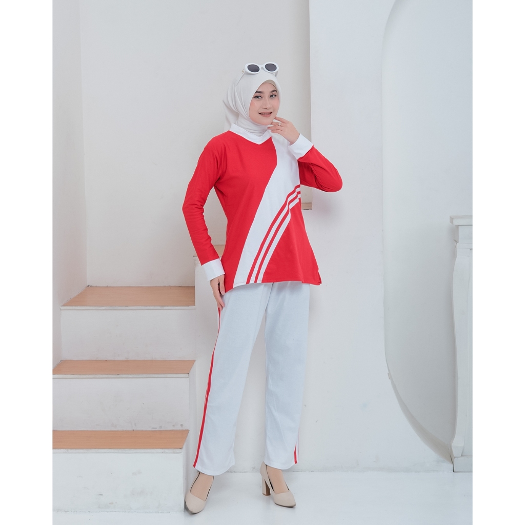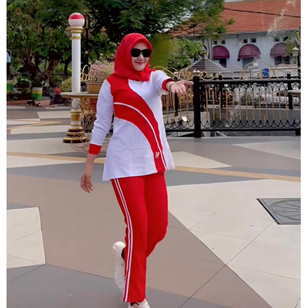Baju Setelan Senam Wanita Terbaru One Set Merah Putih 17 Agustus 2025 Olahraga Wanita Spesial Kemerdekan Bahan Combet 24