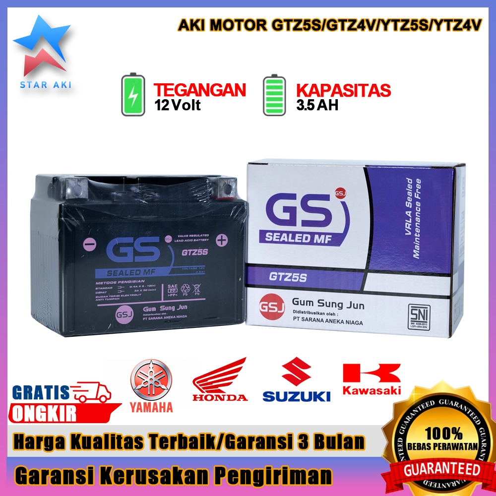 Aki Motor Honda Beat Vario 110 Scoopy Supra X 125 Revo Spacy Aki Kering Accu Kering MF GTZ5S