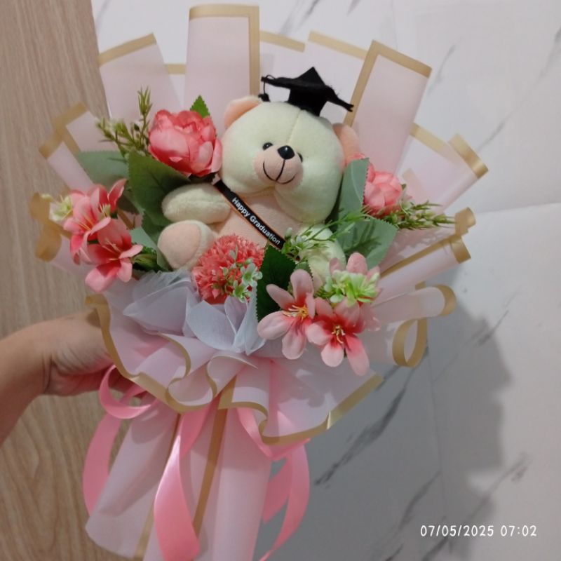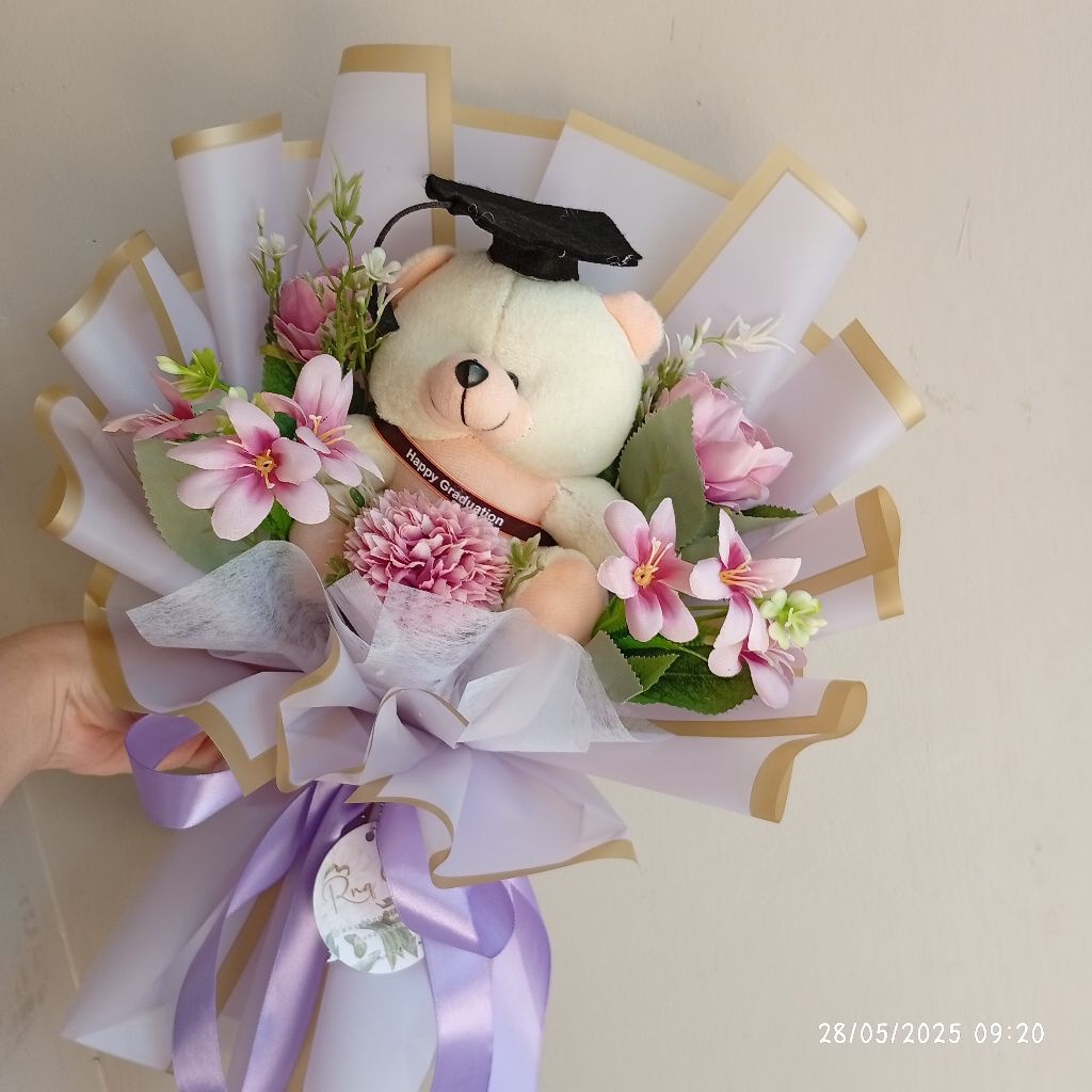 Buket wisuda, buket wisuda murah Ukuran buket PxL 40cm*30cm i berat volume 3kg.