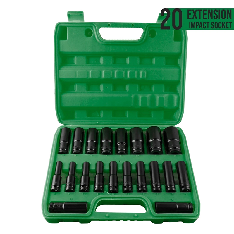 Reaim 20PCS Impact Wrench Socket 1/2 Inch 8-32MM Mata Sok Panjang Deep Socket 20PCS Panjang Mencapai Soket Nut Perbaikan Alat Impact Socket Set