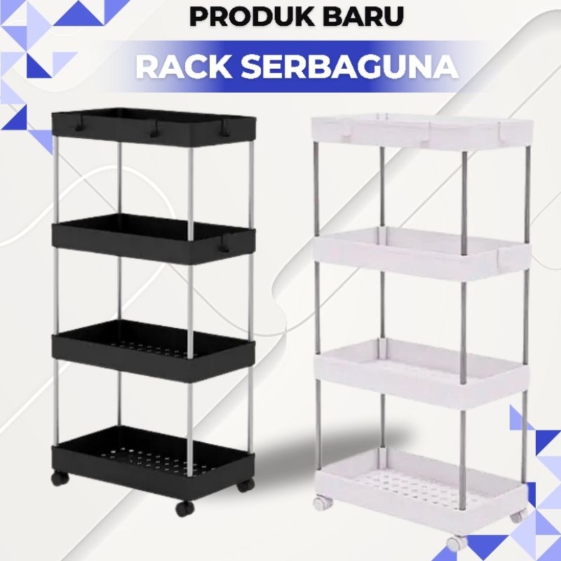 [Samiaku] Rak Susun Persegi Dapur Plastik 4 Susun | Rak Yeye Serbaguna Dengan Roda