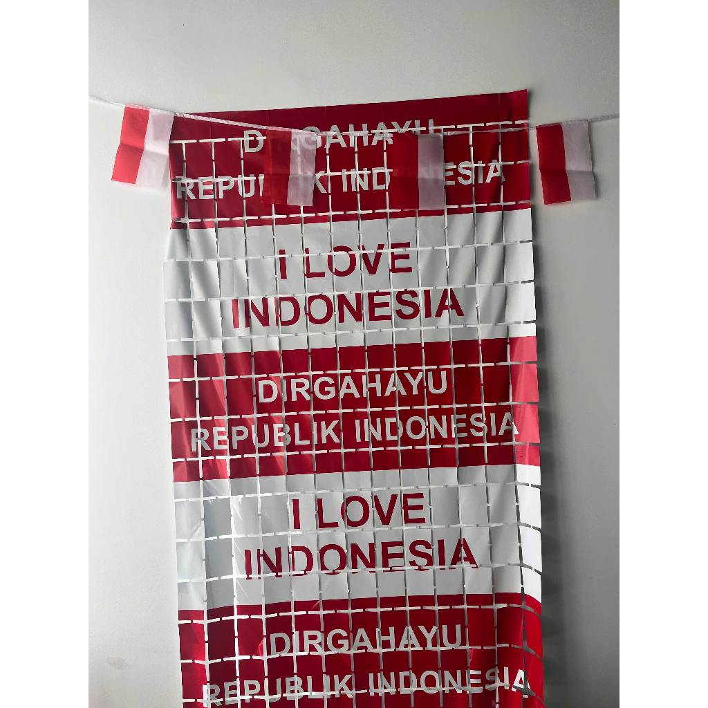 Tirai Foil republik Metalik Backdrop Square indonesia merah putih 17 Agustus Hut Ri