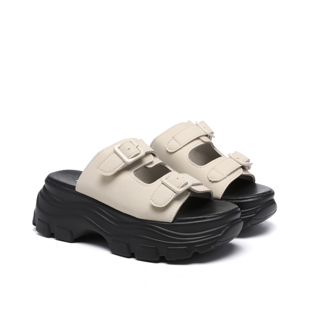 PVN Aran Sandal Tali Wanita Hitam Krem 217