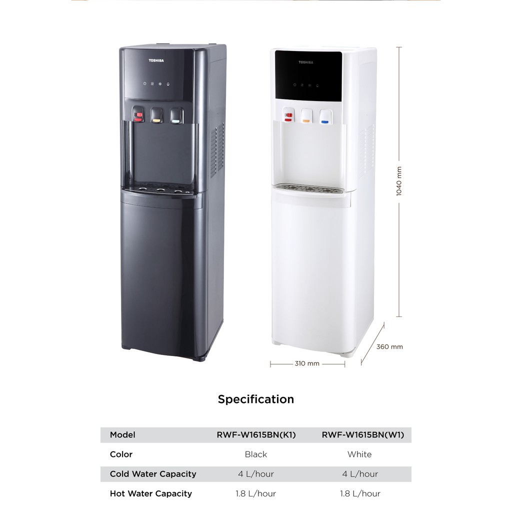 [Mall] TOSHIBA DISPENSER AIR GALON BAWAH RWF-W1615BN(K1) BOTTOM LOADING - 3 FAUCET - LOW WATT - WARNA HITAM
