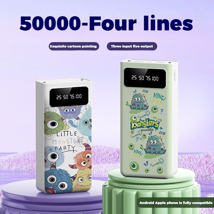 Powerbank 50000mAh Cute Cartoon LED Comes with 4 wires Portable Fast Charging powerbank 50000 mah