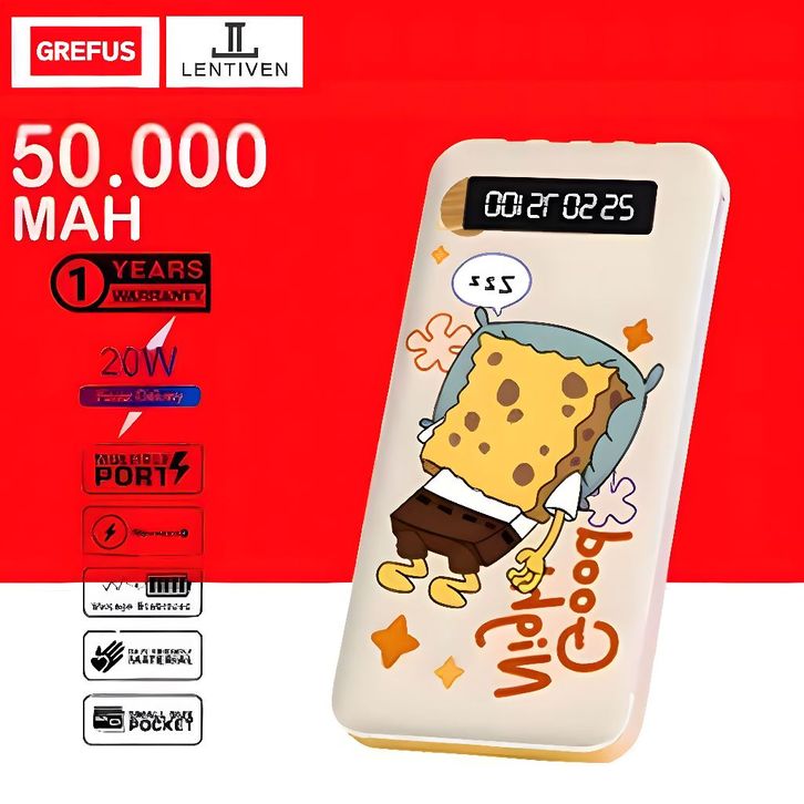 GREFUS LENTIVEN Powerbank 50000 mAh 4 Kabel Cute External Battery Mini Fast Charging