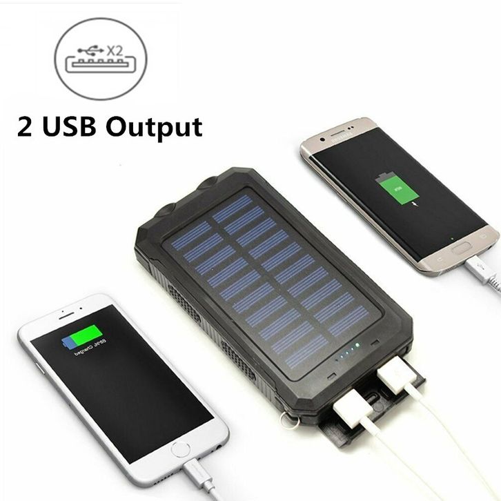 50000 mAh Powerbank Solar Cell Tenaga Matahari Dual USB Flashlight Daya Ponsel