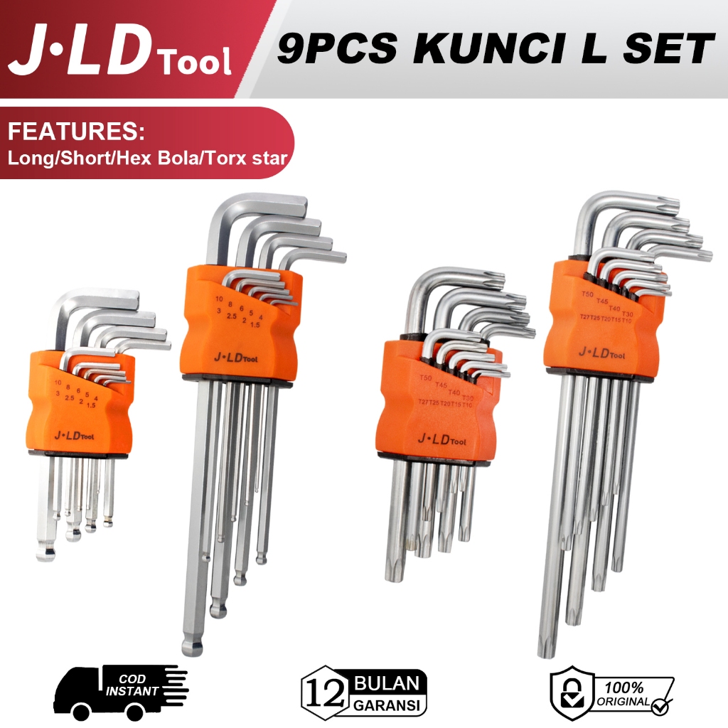 JLD 9 PCS Kunci L Torx Bintang/Hex bola/ Pendek dan Panjang CR-V Buat buka Homda Yamaha