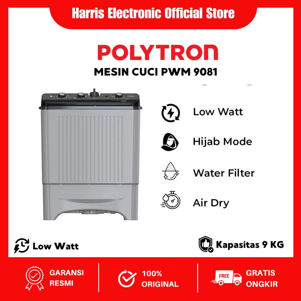[Mall] MESIN CUCI 2 TABUNG POLYTRON PWM-9081 9KG