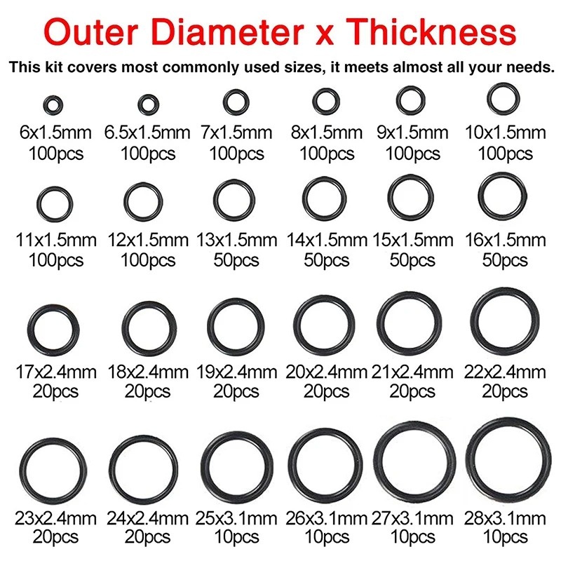 Karet Seal O Ring 1200pcs HNBR / Rubber O Ring Seal Tightening +Box