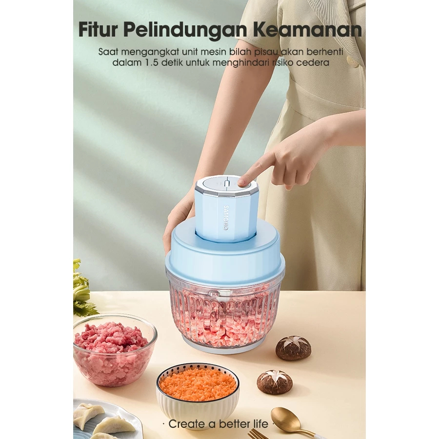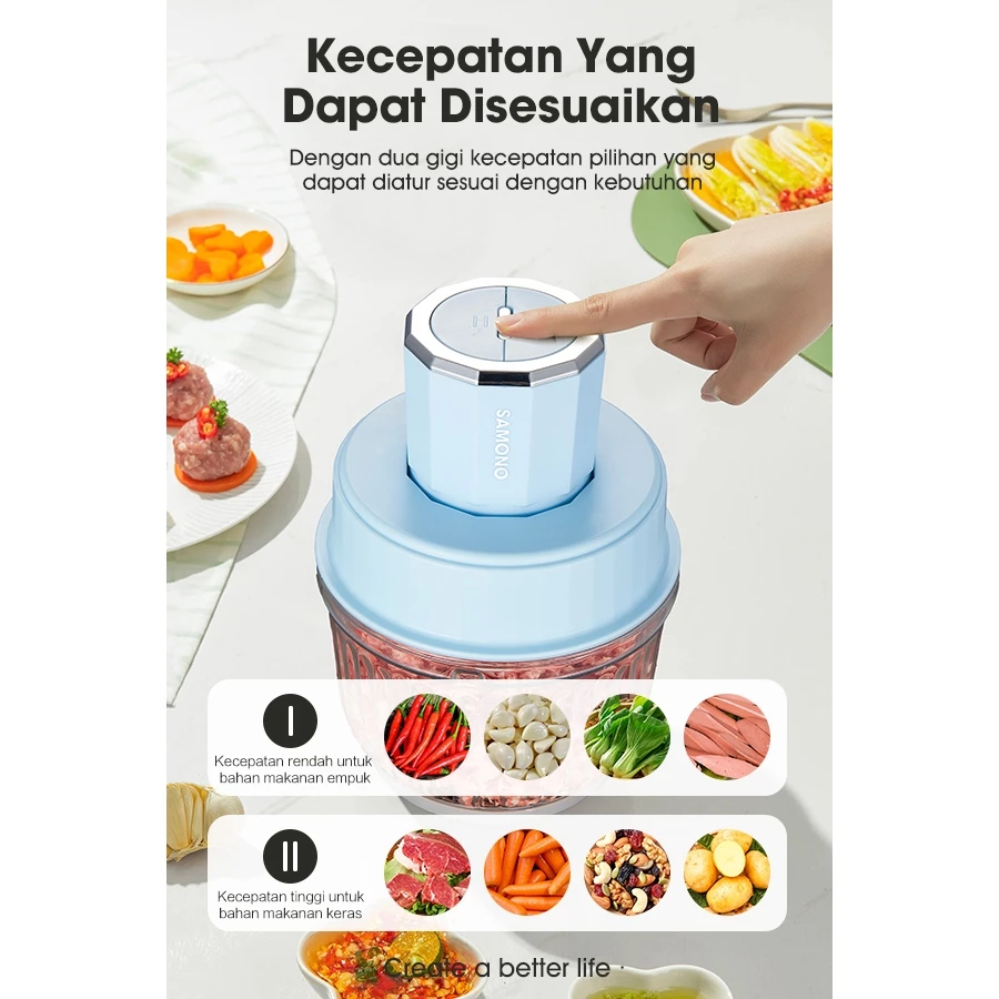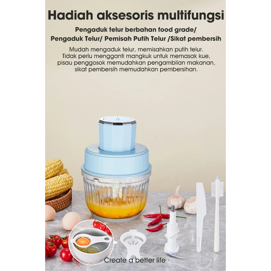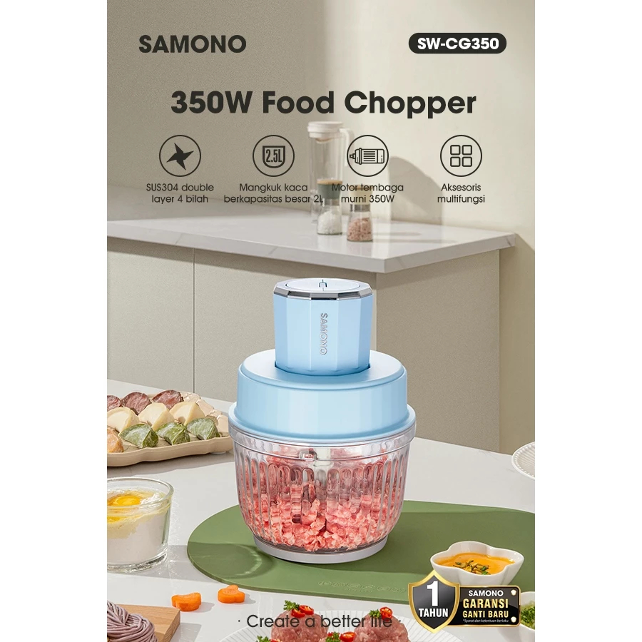 [Mall] SAMONO FOOD CHOPPER MULTIFUNGSI FOOD PROCESSOR 2.5 LITER DAYA KUAT PENGGILING DAGING PENGHALUS MAKANAN GARANSI 1 TAHUN SW-CG350 - LIGHT BLUE