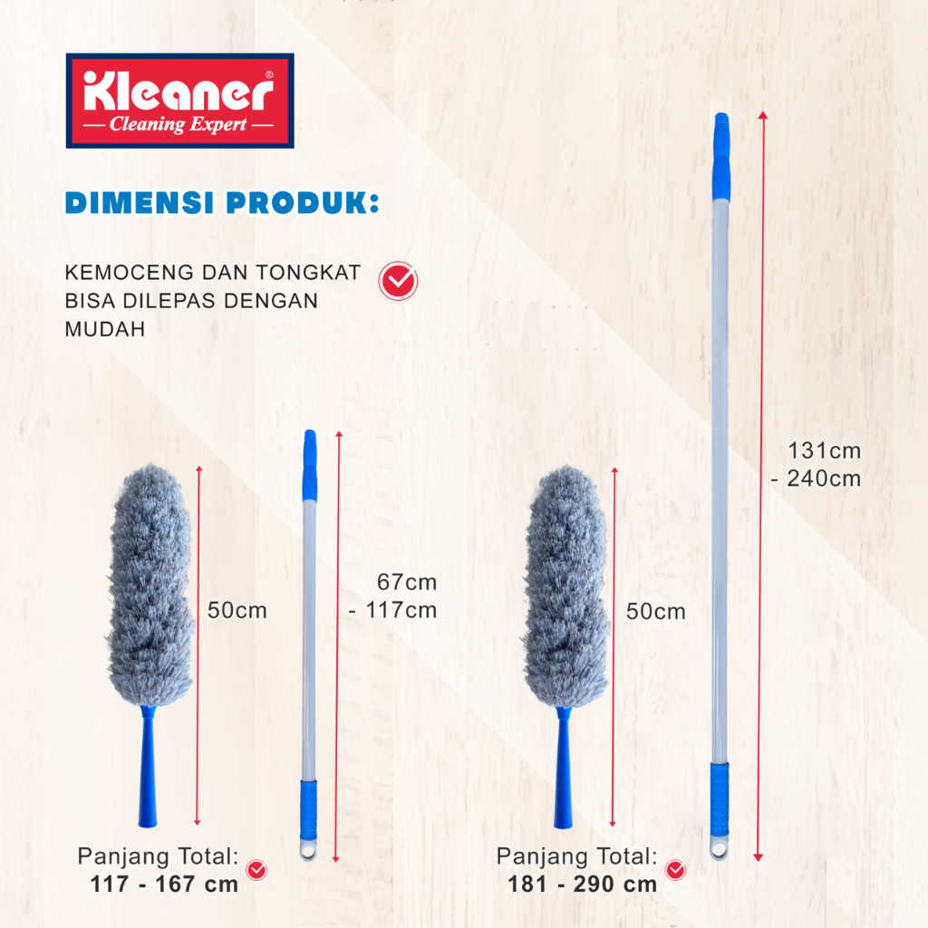 Kleaner Kemoceng Fleksibel Gagang Extend / Teleskopik Abu Abu