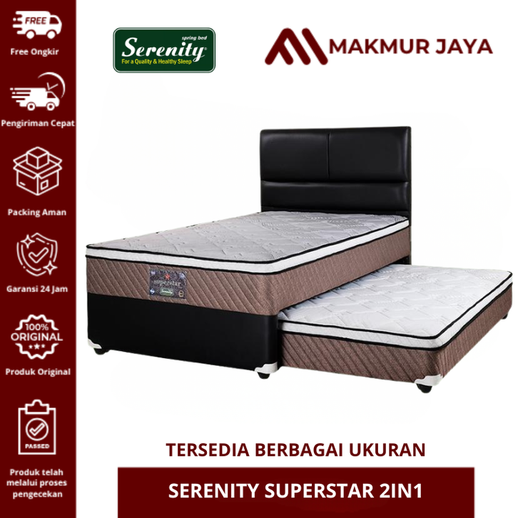 SPRINGBED SORONG 2IN1 SERENITY SUPERSTAR 100X200 120X200 90X200 KASUR SPRING BED 2 IN 1 ANAK SET FULLSET MURAH TANPA DP