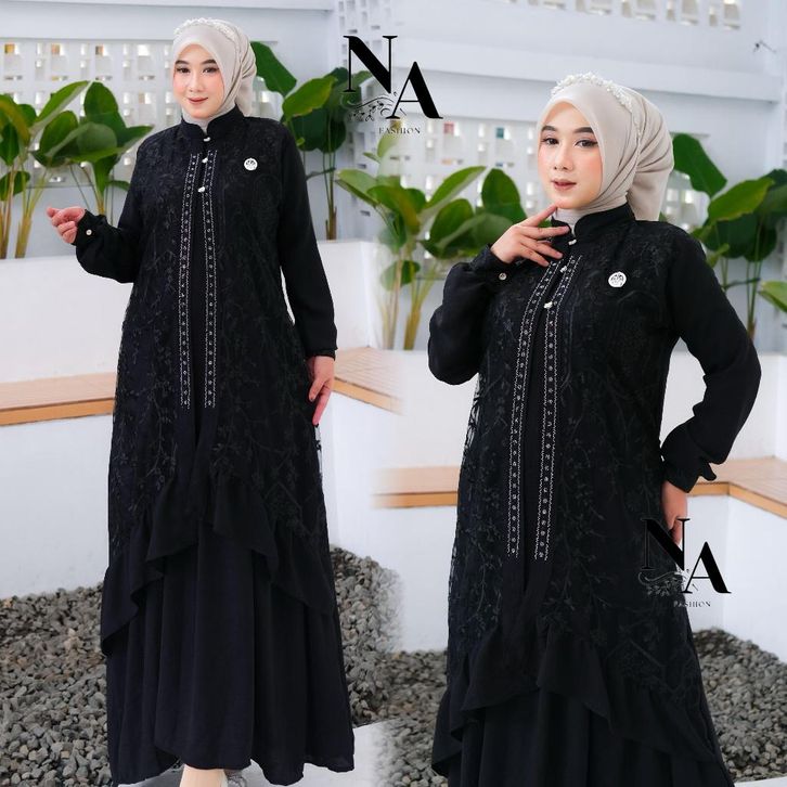 na fashion-zahra dress gamis trendy terbaru bahan crinkle mix brokat sapto anggun mewah cantik elegant