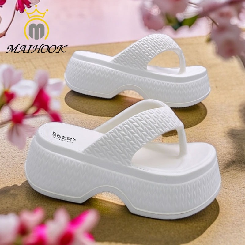 MAIHOOK Sandal Wanita Jepit Jelly Wedges Korea Style Terbaru 5.5cm Casual Premium Sendal Slop Wanita Dewasa Jelly Cewek Anti Slip empuk EVA