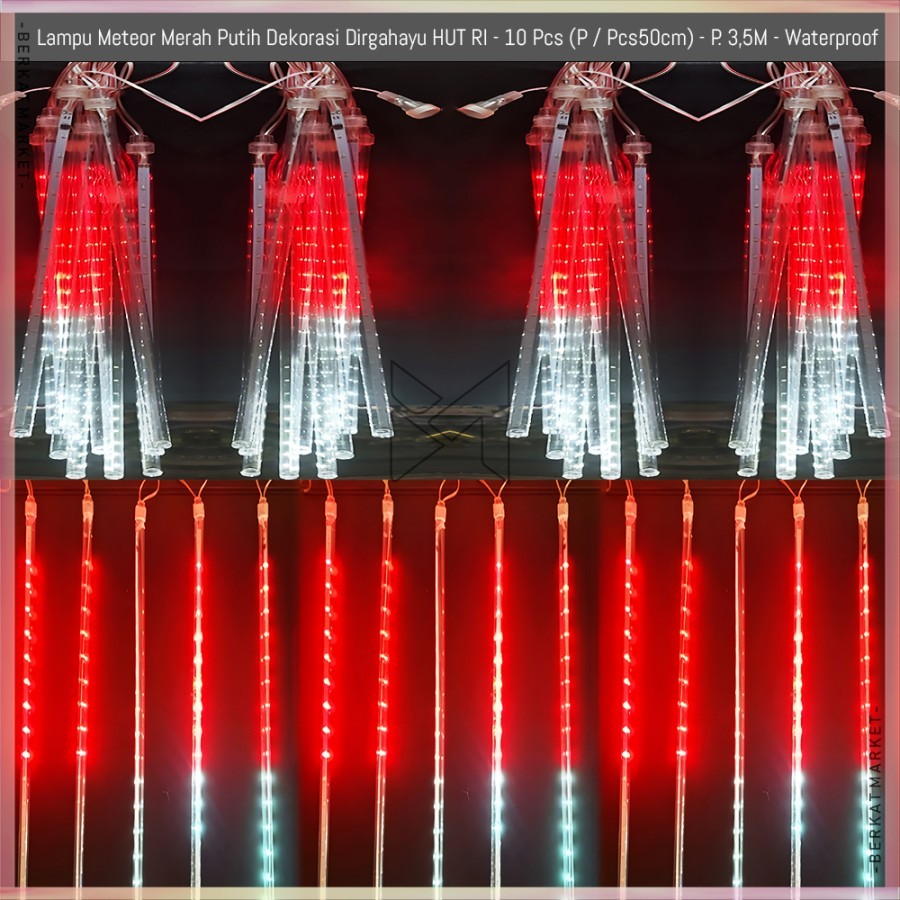 Lampu Meteor 50cm 10 batang Merah Putih RGB Lampu Hias Gantung 1 set