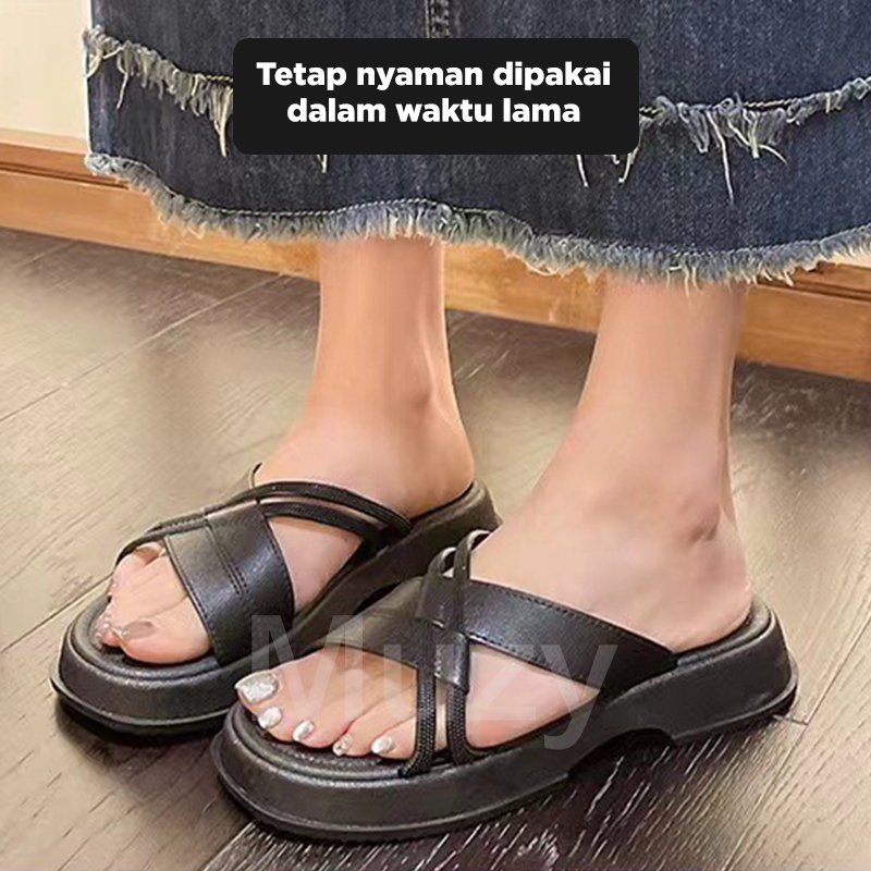 Muzy Sendal Wanita Sendal Wedges Sendal Hak Tahu Wanita Sendal Karet Heels Empuk Anti Slip HSN209