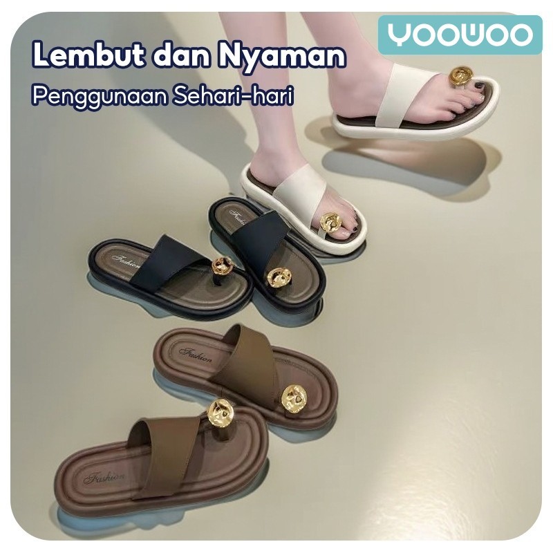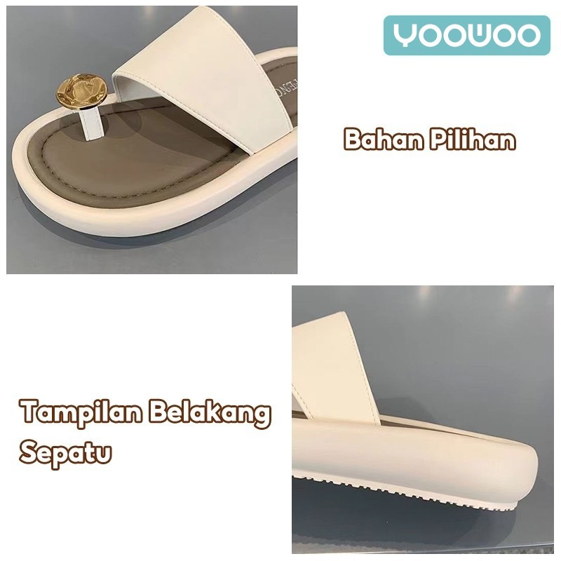 YooWoo Sandal Untuk Wanita Modis Berlian Imitasi Sandal Pantai Bersol Tebal