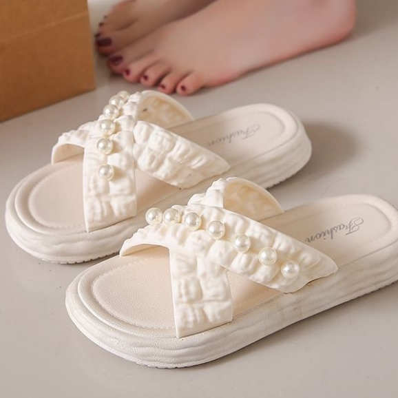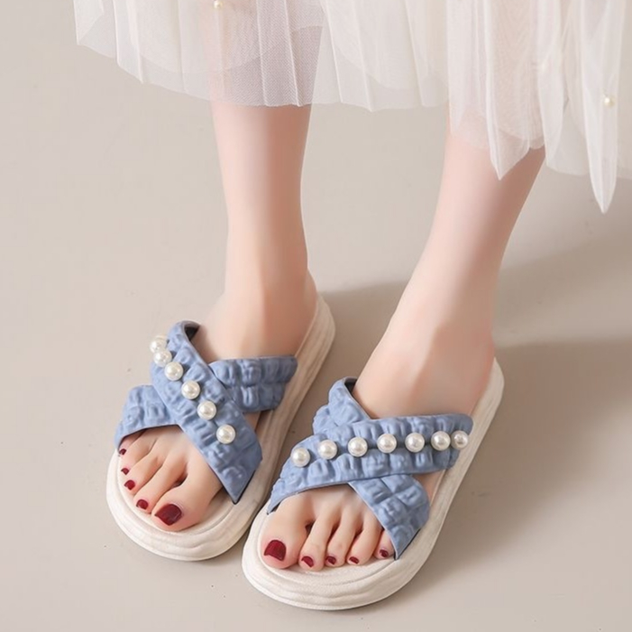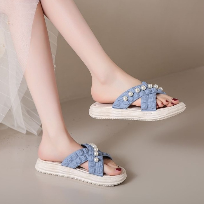 Muzy Sandal Wanita Flat Korean Tali Silang Mutiara Anti Slip Flat Shoes Wanita Sendal Wanita HSN218
