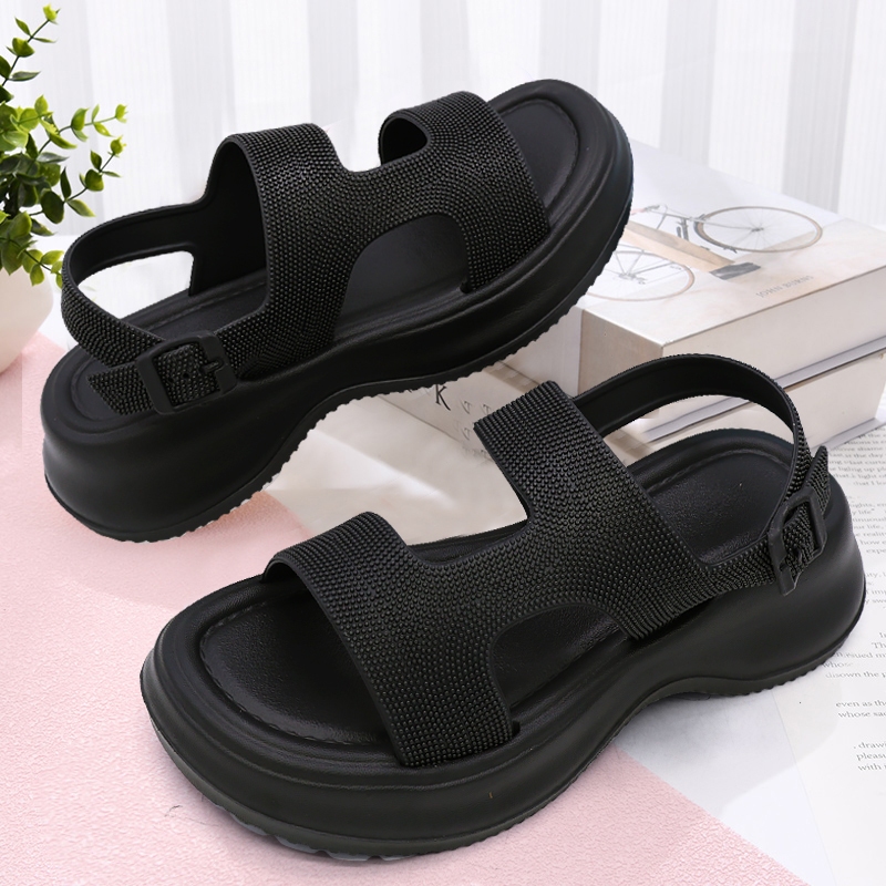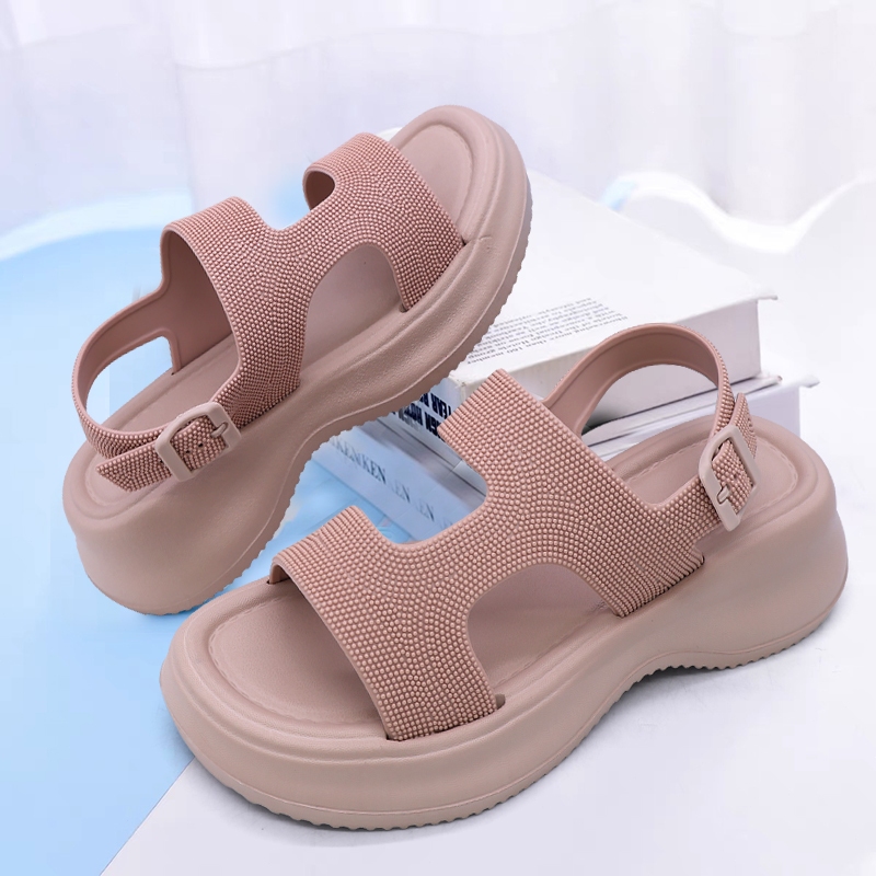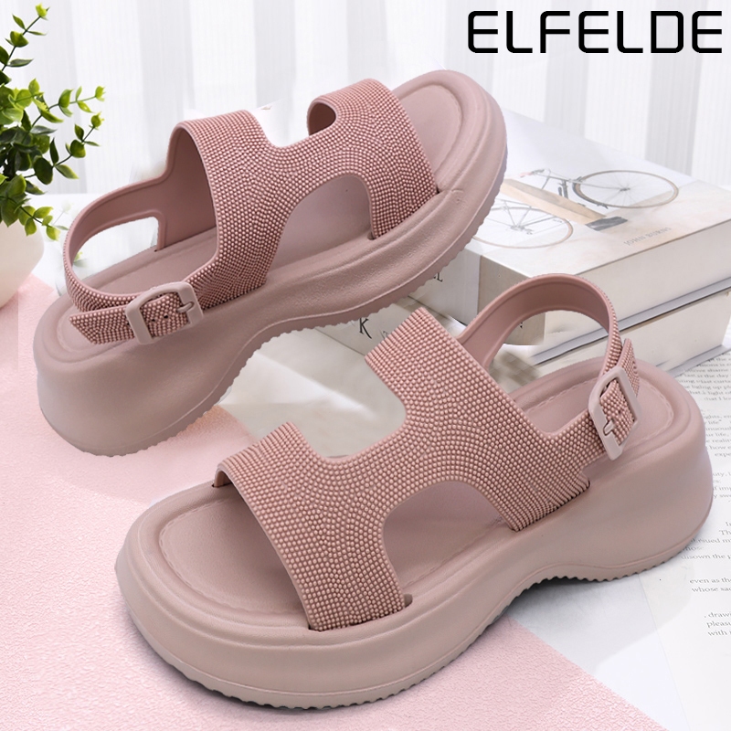 ELFELDE Sandal Wanita Kekinian Tinggi Sandal Fuji Sandal Slop Wanita Slip On Kasual Tebal Wanita