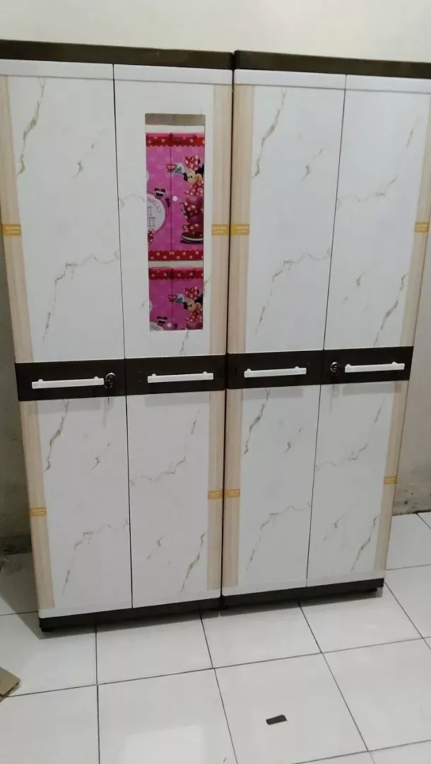 Lemari Plastik Gantungan Baju Lemari 4 Pintu Kaca Kunci / Lemari Pakaian Jumbo