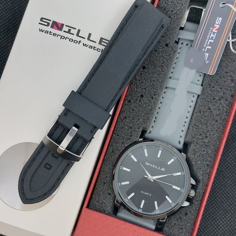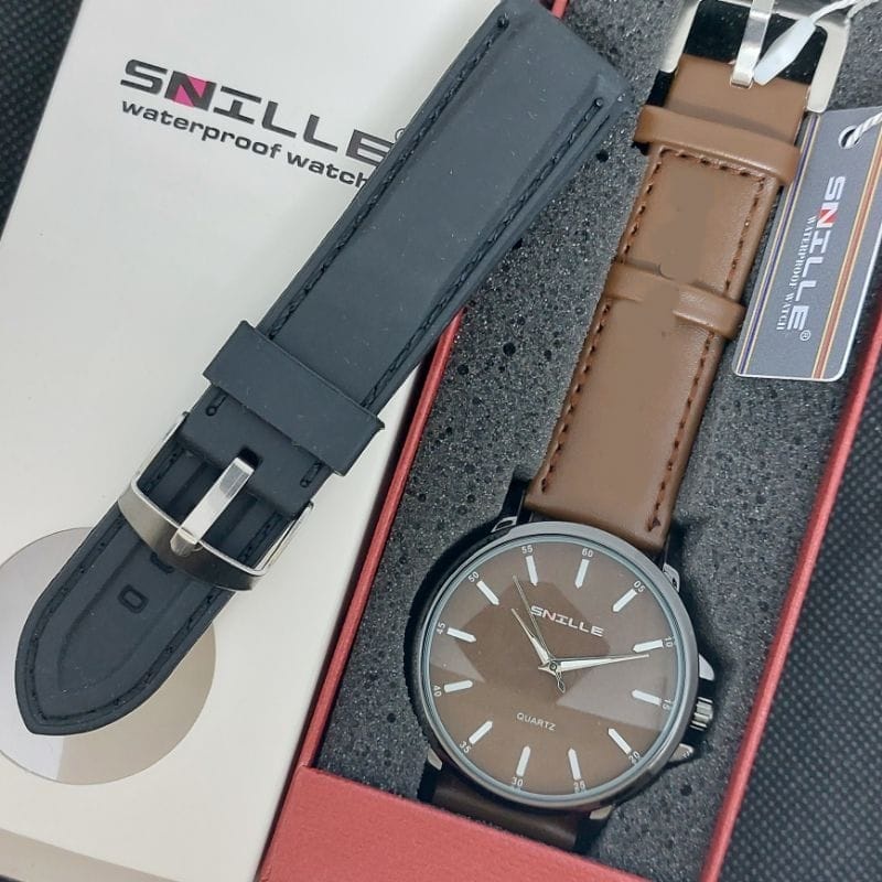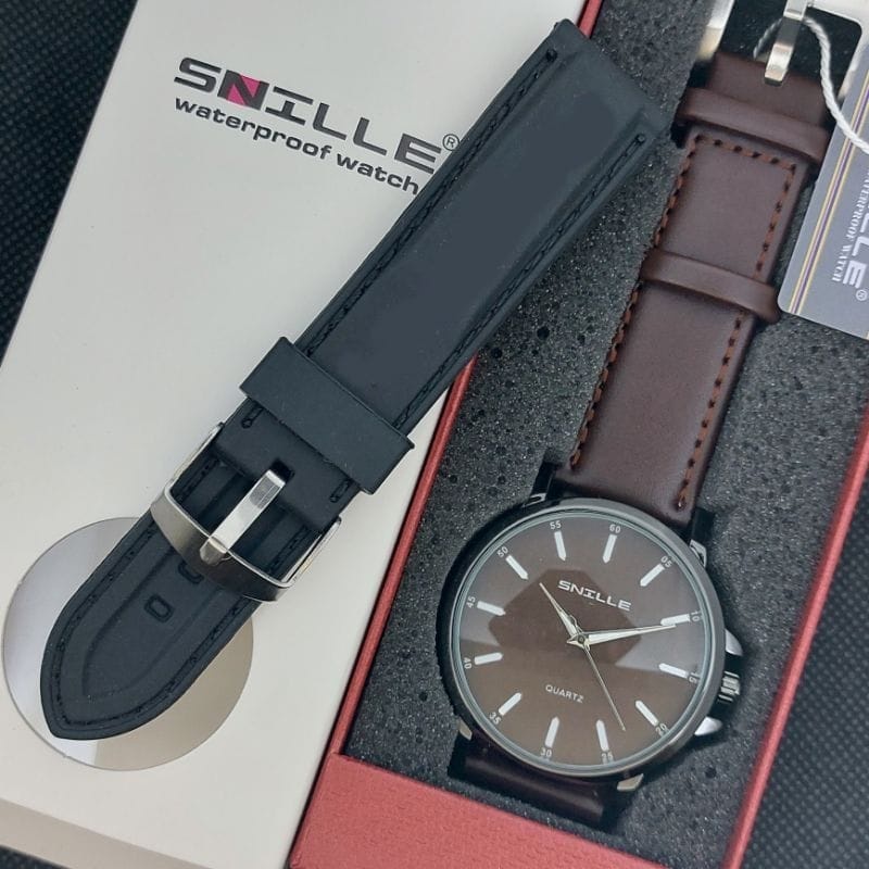 JAM TANGAN PRIA SNILLE N1013 ORIGINAL TALI KULIT WATERPROOF Paket Free Tali Rubber + Box + Baterai Cadangan WATCHES( BIS