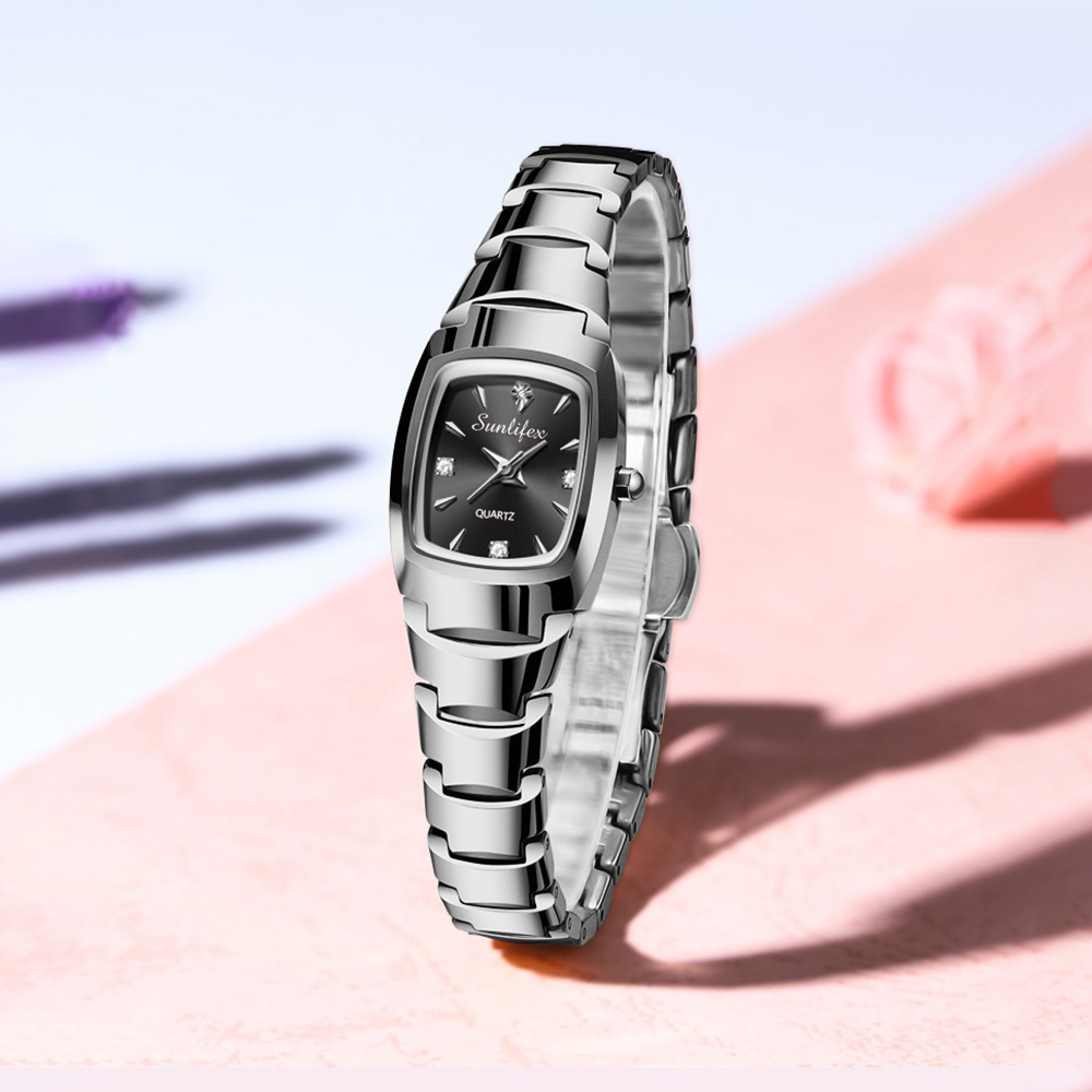 Sunlifex 9089 New Jam Tangan Wanita Korea Elegan Bisnis Kasual Persegi Anti Air Tali Paduan Cewek