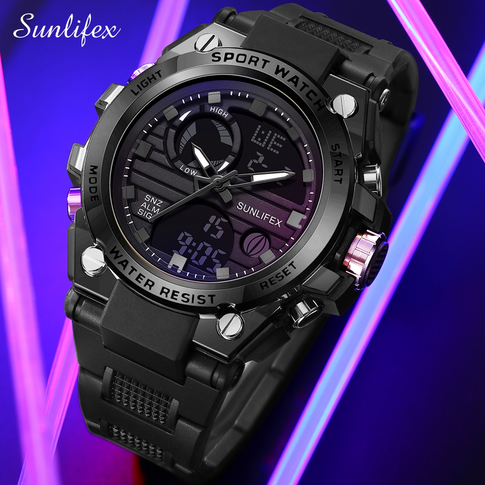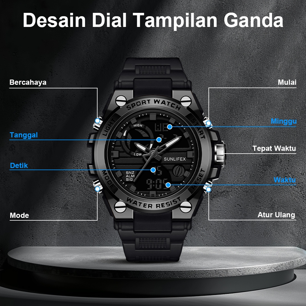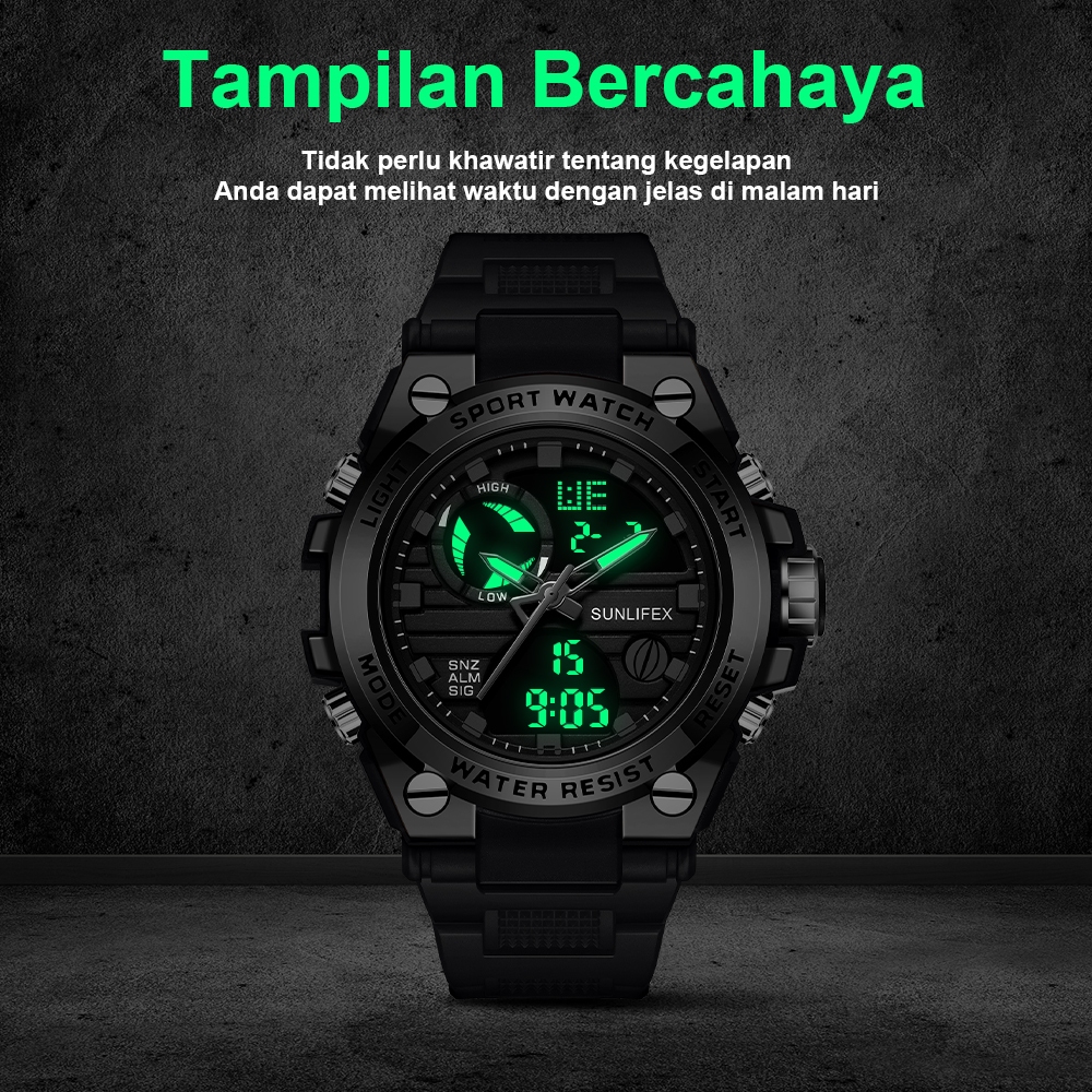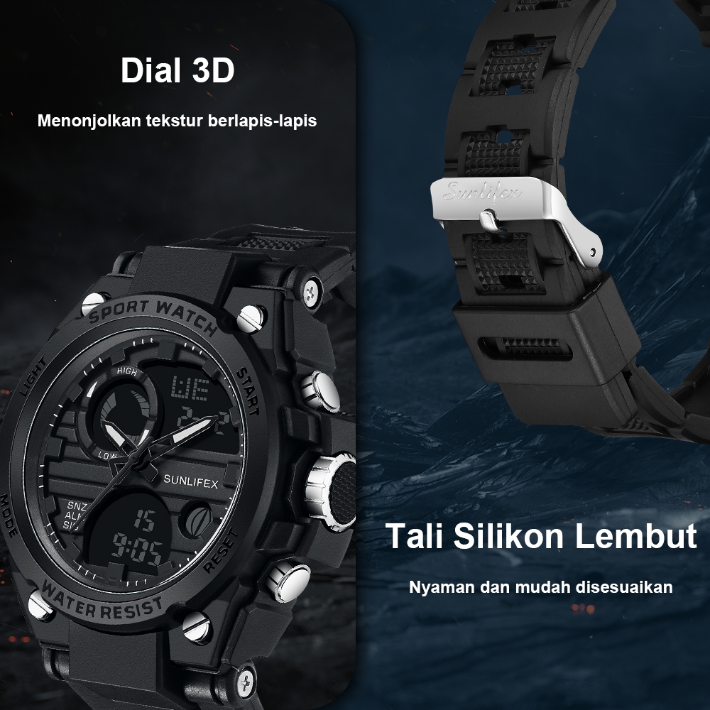 Sunlifex Jam Tangan Pria Digital&Analog Olahraga Tali Silikon Luminous Multifungsi Jam Tangan Cowok