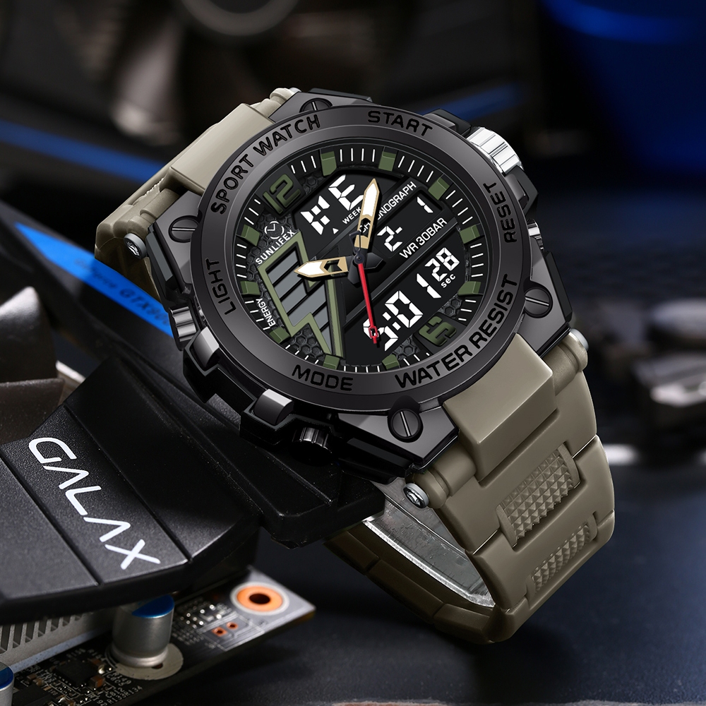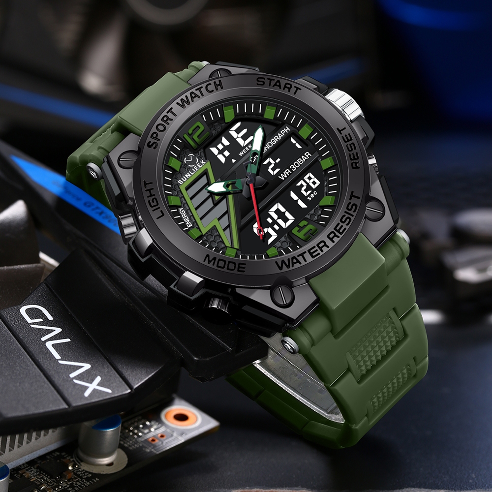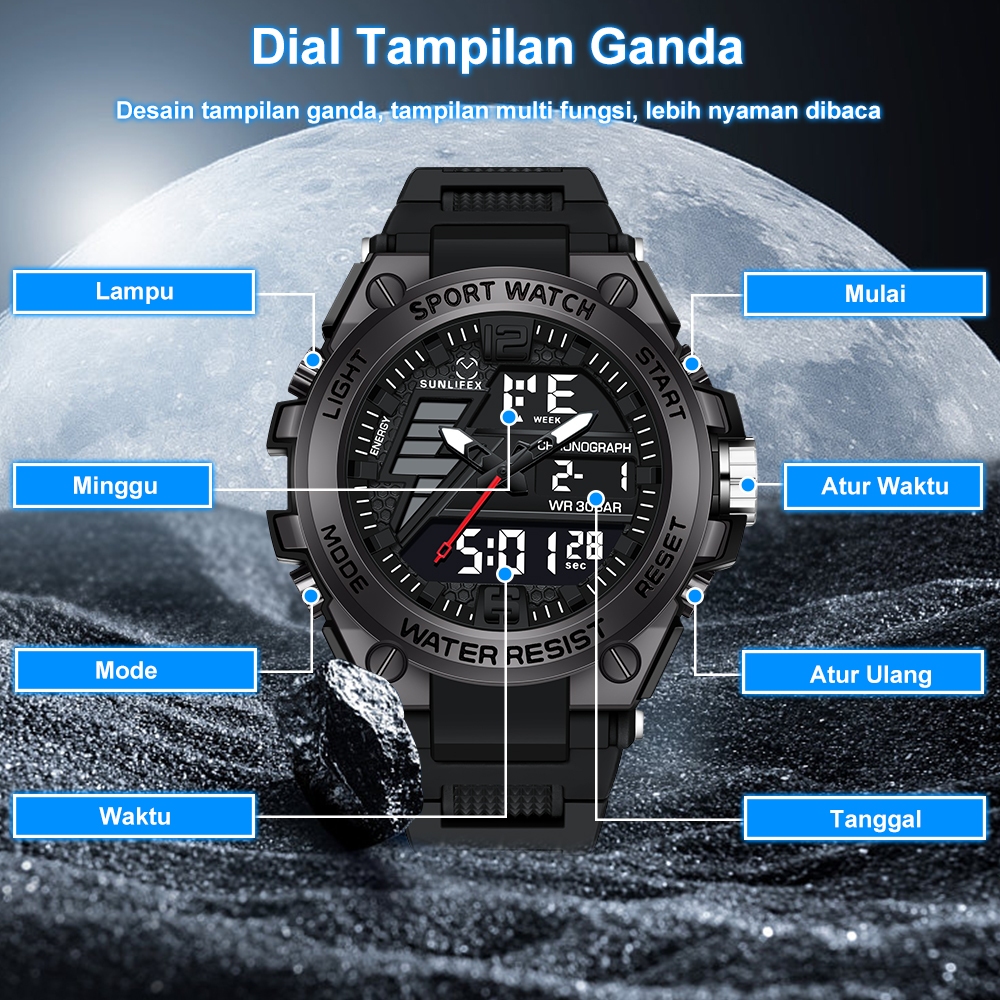 Sunlifex D004Pro Jam Tangan Pria Digital Multifungsi Luminous Tali Silikon Anti Air Jam Tangan Cowok