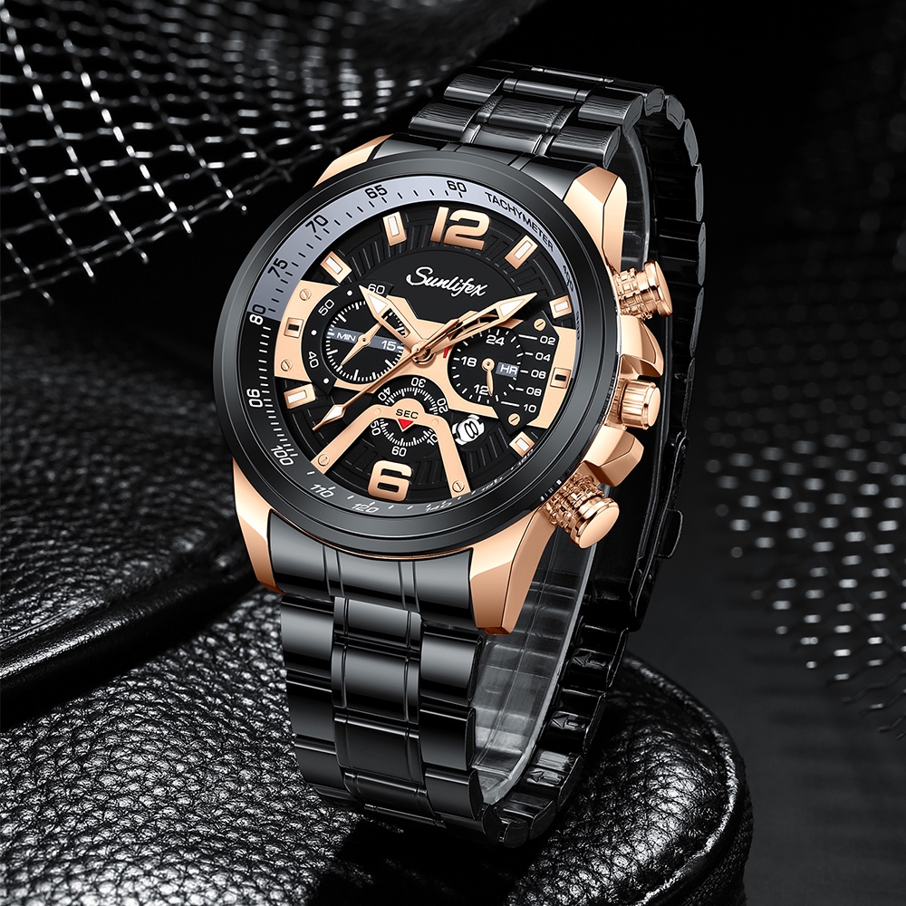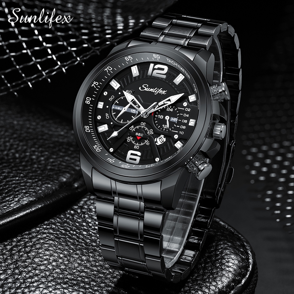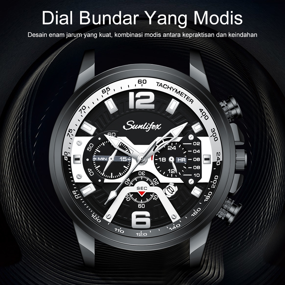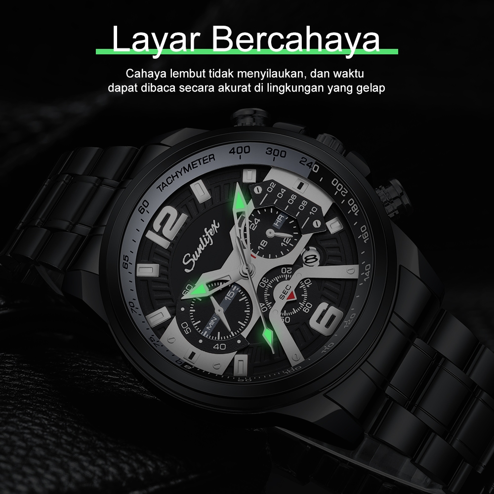 Sunlifex Jam Tangan Pria Anti Air original 100% Sport Layar Luminous 9033 Stainless Steel Jam Tangan Cowok
