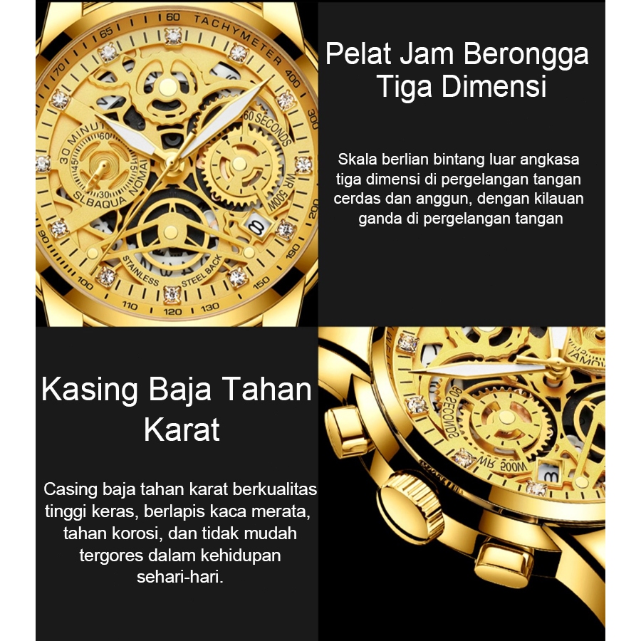 AOKEYO Jam Tangan Pria 4088 Original Kuarsa Kalender Tali Stainless Steel Jam Tangan Cowok