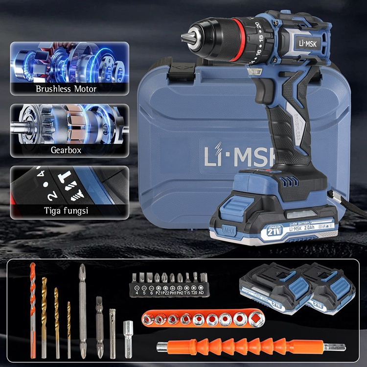 Mesin Bor Baterai Brushless 80N.M 10mm Cordless Impact Drill Dapat Mengebor Beton Besi Kayu LIMSK LI-1010