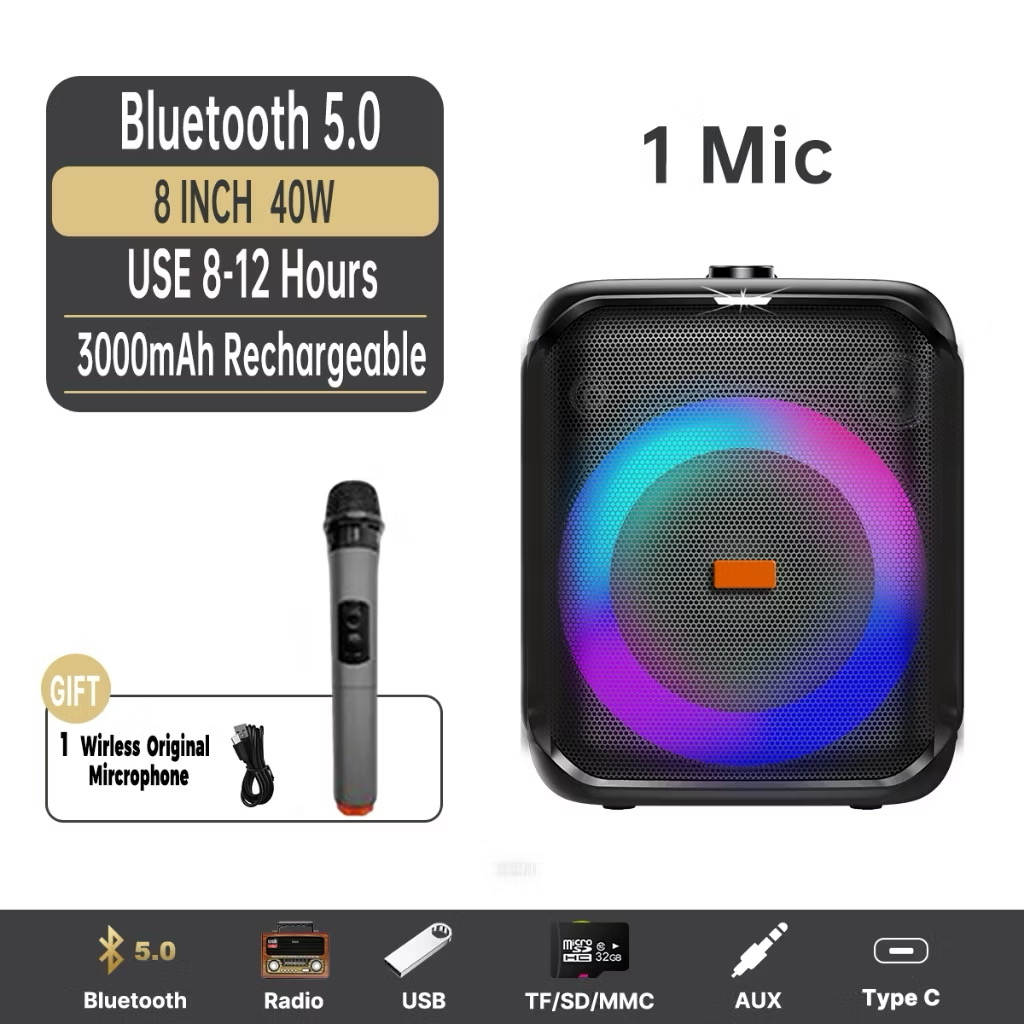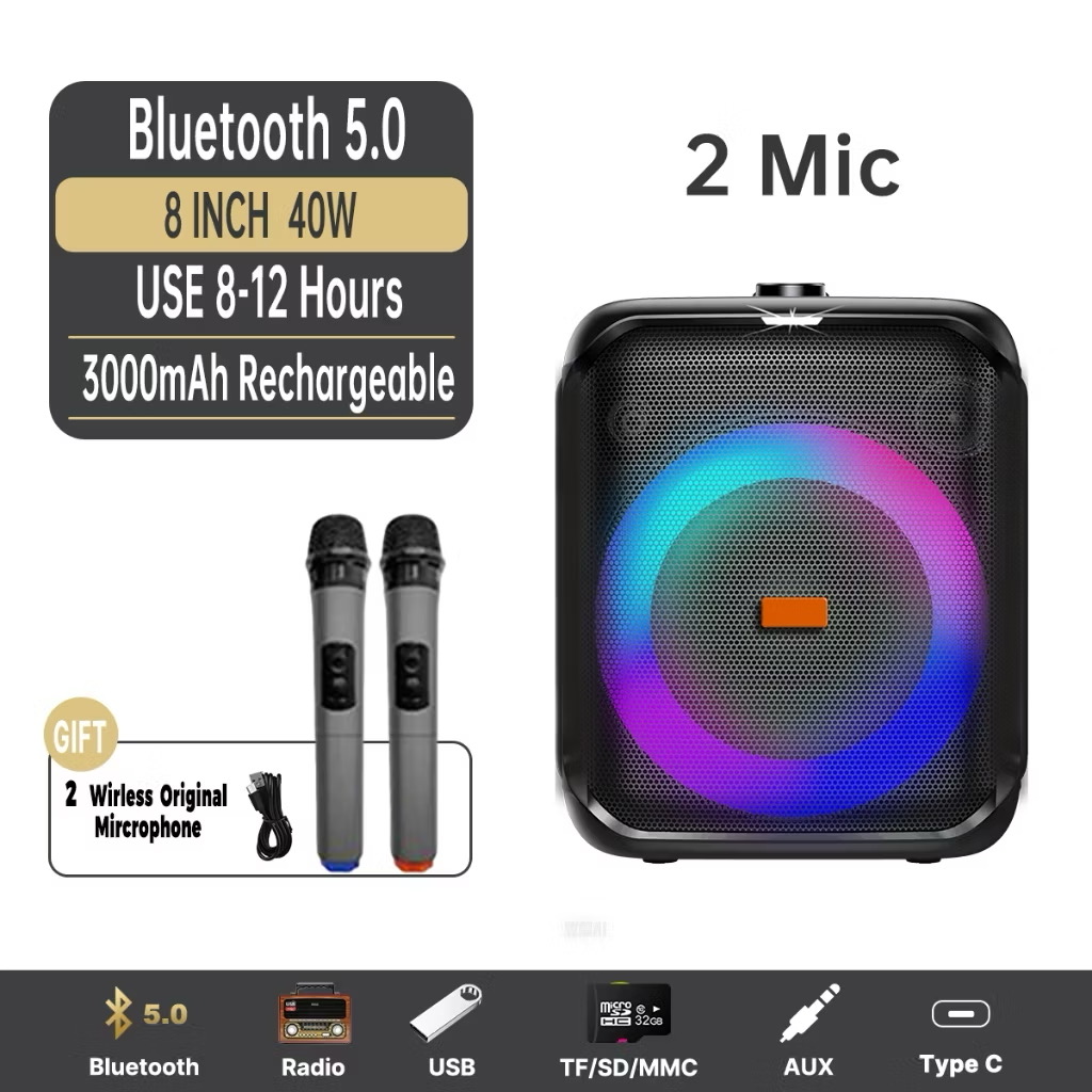 MAIKET Party Speaker 8 inch Speaker Bluetooth Karaoke 40W PRO Super Bass USB/FM/AUX 2 Mic Wireless Original official