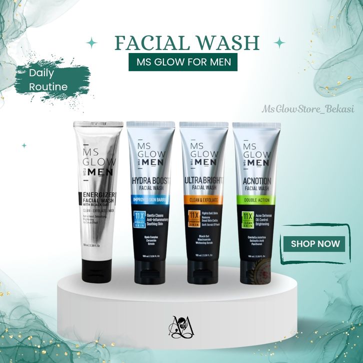 MS GLOW For Men Facial Wash | Hydra Boost, Ultra Bright, Acnotion, Energizer BPOM Original