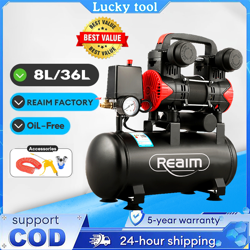 Reaim Kompressor Angin Listrik Tanpa Minyak 36L - Kompressor Angin Tipe Langsung dan Senyap