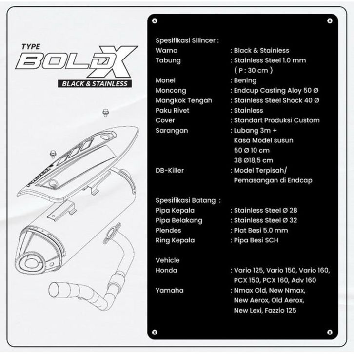 Knalpot Standar Racing NOBI Bold X Stainless / Black Nmax Aerox VarioNew PCX ADV