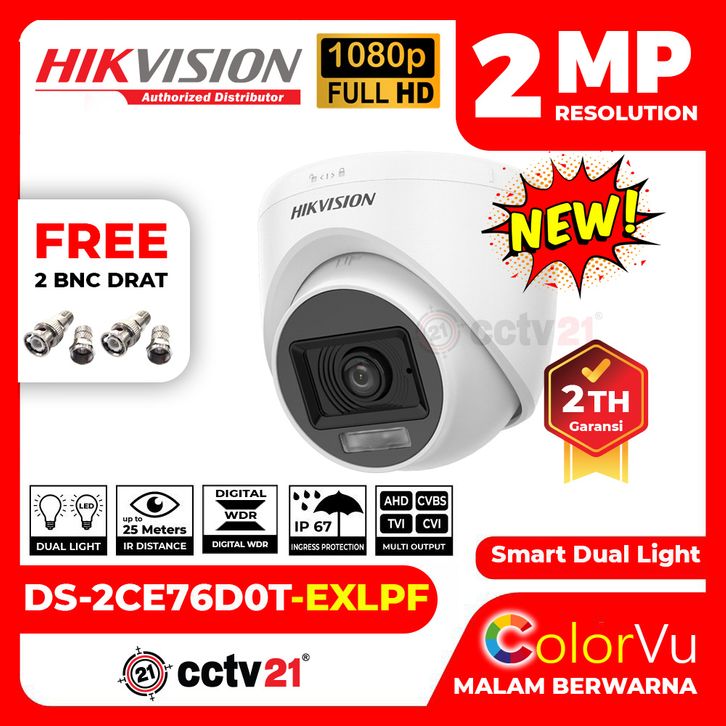 Promo CCTV CAMERA HIKVISION 2MP DS-2CE76D0T-EXLPF DUAL LIGHT COLORVU INDOOR 1080p Garansi Resmi Elegan