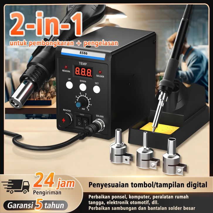 Murah Stasiun Solder 8586 700W 2 in 1 Digital Display SMD Ulang Hot Air Solder Besi 220V ESD Las Pematrian Alat Perba