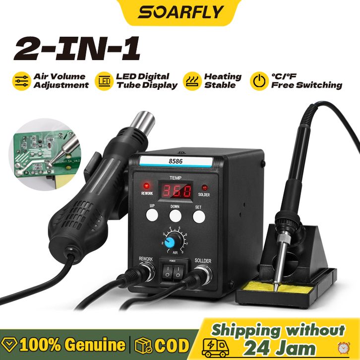 Terlaris SOARFLY Hot Air Solder Blower 858D/8586 Phone Repair Digital LED Display 700W AC 220V 45dB Soldering Station S