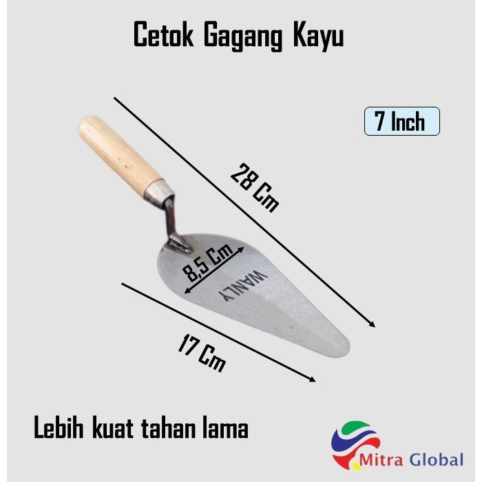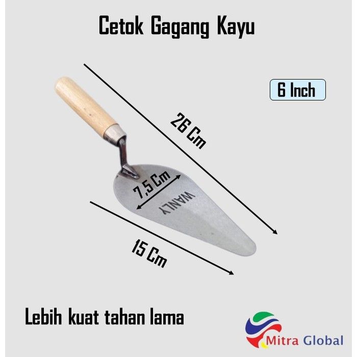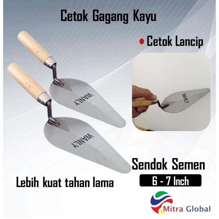 Sendok Tembok Lancip 6 Inci Gagang Kayu l Cetok Skop Semen 7" Inch
