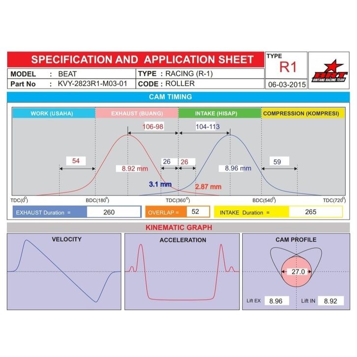 Master Cam Noken As BRT Beat Karbu Scoopy Spacy Karburator Tipe R